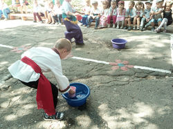 До святкування Дня державного прапору та 27 річниці Дня незалежності України в закладі пройшло свято «Ми діти твої, Україно!». В заході прийняли участь вихованці середніх та старших груп. Під час свята вихованці разом з присутніми виконали гімн України, діти співали, танцювали, змагалися у козацьких розвагах. Хлопці-козачата допомогли дівчатам перебратися до лісу через місточок, змагалися у вмінні скакати на конях та допомогли дівчатам наносити води для приготування кулішу. А красуні дівчата назбирали багато грибів у лісі, серед безлічі продуктів обрали ті, з яких можна приготувати смачний козацький куліш. Малята приготували подарунки рідній державі: вірші та малюнки!